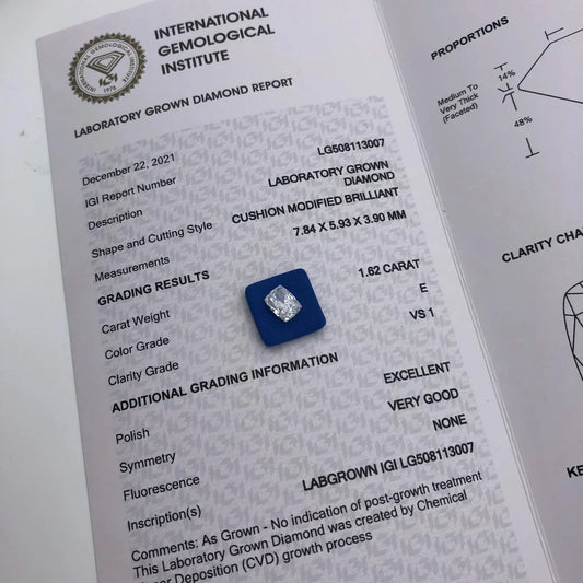 1ct 1.5ct 2ct 2.5 3ct 5ct HPHT CVD Diamond IGI Certificate Cushion cut lab grown diamonds